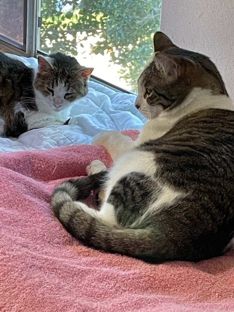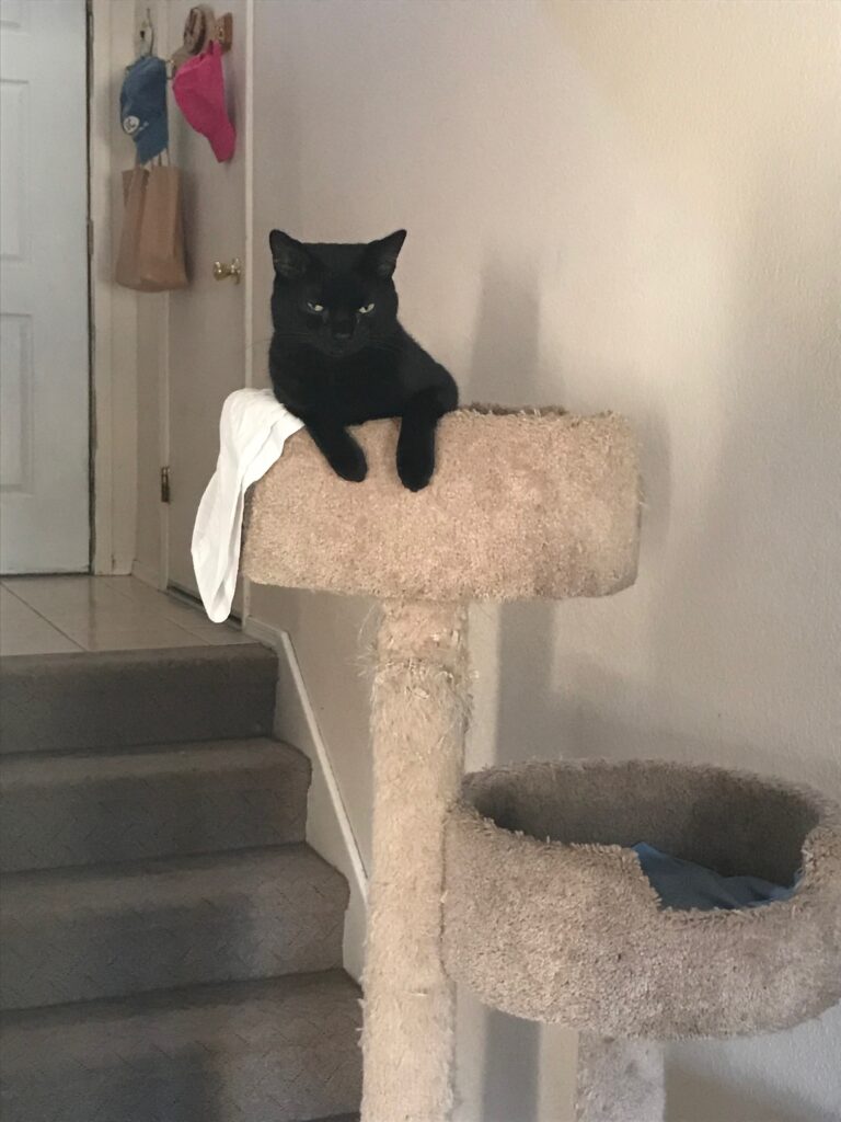 My cat Grayson loves to spend a lot of time on a short cat tower with a sheet over it. He will nap there or just hang out. He has been quite skittish and easily scared in the past and this spot seems to be a safe zone for him. He does come out of there a lot too. If I am looking for him and don’t see him, then that is the first place I look. A couple of years ago we had a lot going on with more stress and distraction than usual. I did not really notice that I had not seen Grayson for a day or two. We always have several cats, strays, fosters, and dogs too. Usually, between my wife and me we can keep track of everybody at least daily, but sometimes it may be a couple of days or so before we both realize somebody has been hiding/sleeping more than usual.